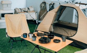 デイキャンプ・宿泊も可能です。キャンプ用品一式レンタルサービス(有料)もございます。